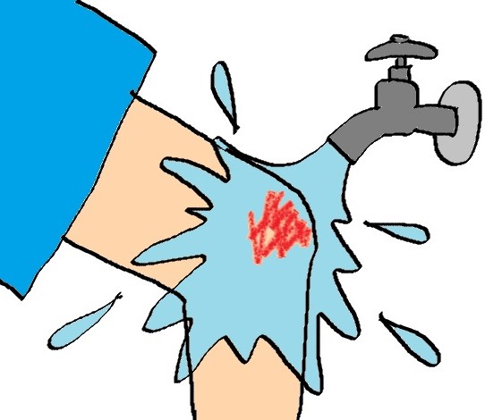 まずは、傷口を流水でよく洗いましょう。