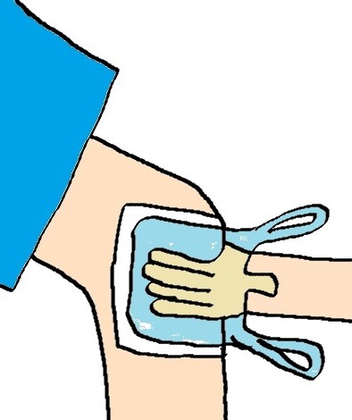 ※ゴム手袋がない時は、少し処置がしにくいですがスーパーなどの袋に手を入れ代用したり、ケガした本人に指示を出して処置させましょう。